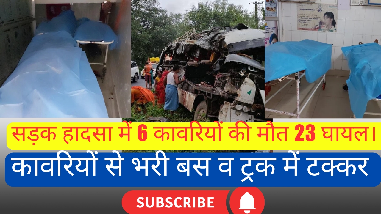 देवघर में कांवरियों की बस और ट्रक की टक्कर, 6 की मौत, 23 घायल।